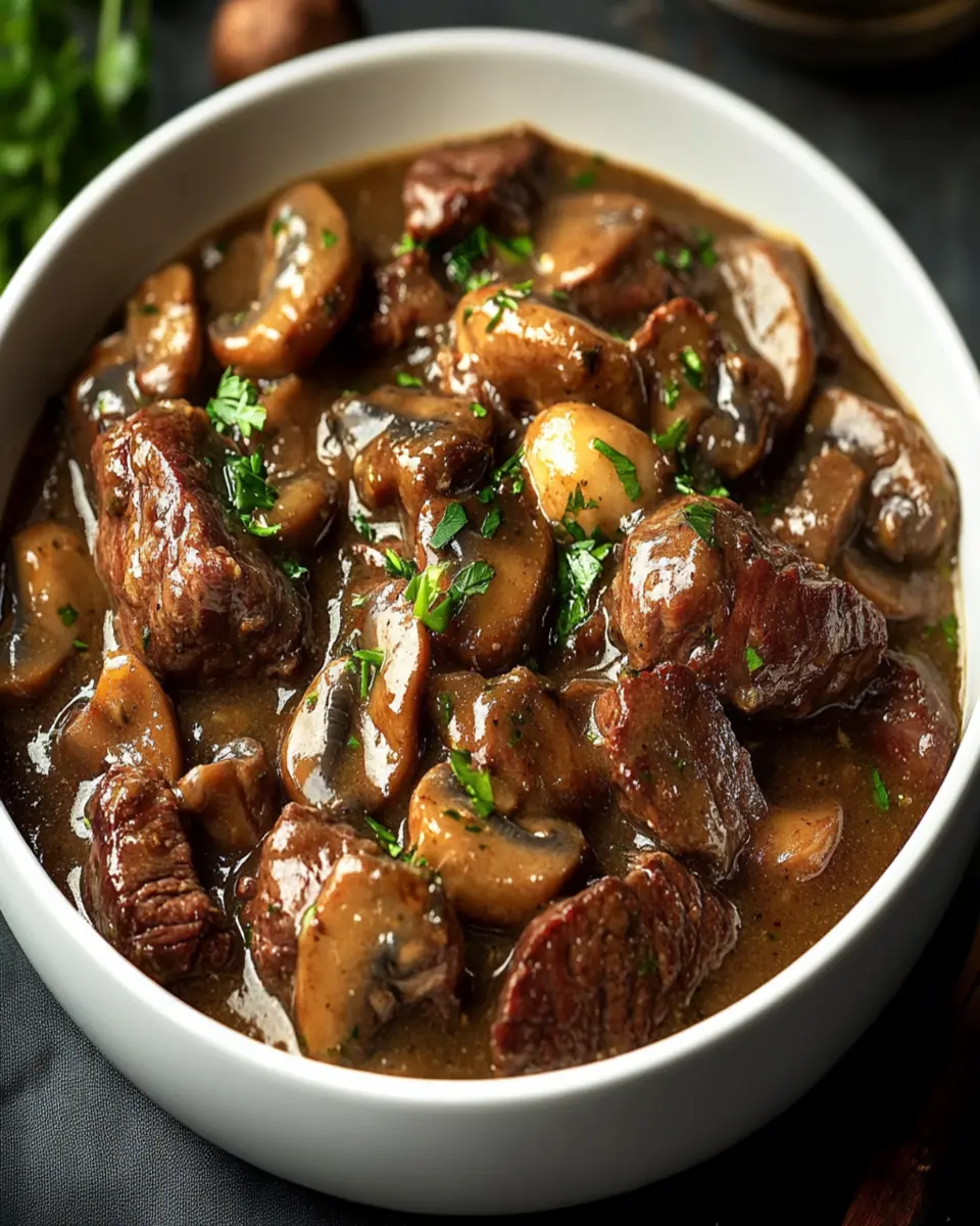 Imagine the aroma of tender beef simmering in a savory mushroom gravy filling your kitchen. This recipe stands out not only for its ease but also for its rich taste that can make any weeknight feel special. With just a few ingredients and minimal prep time, you can serve up a dish that’s both comforting and impressive. Plus, it’s versatile! You can pair it with rice, noodles, or even serve it with crusty bread for dipping.
