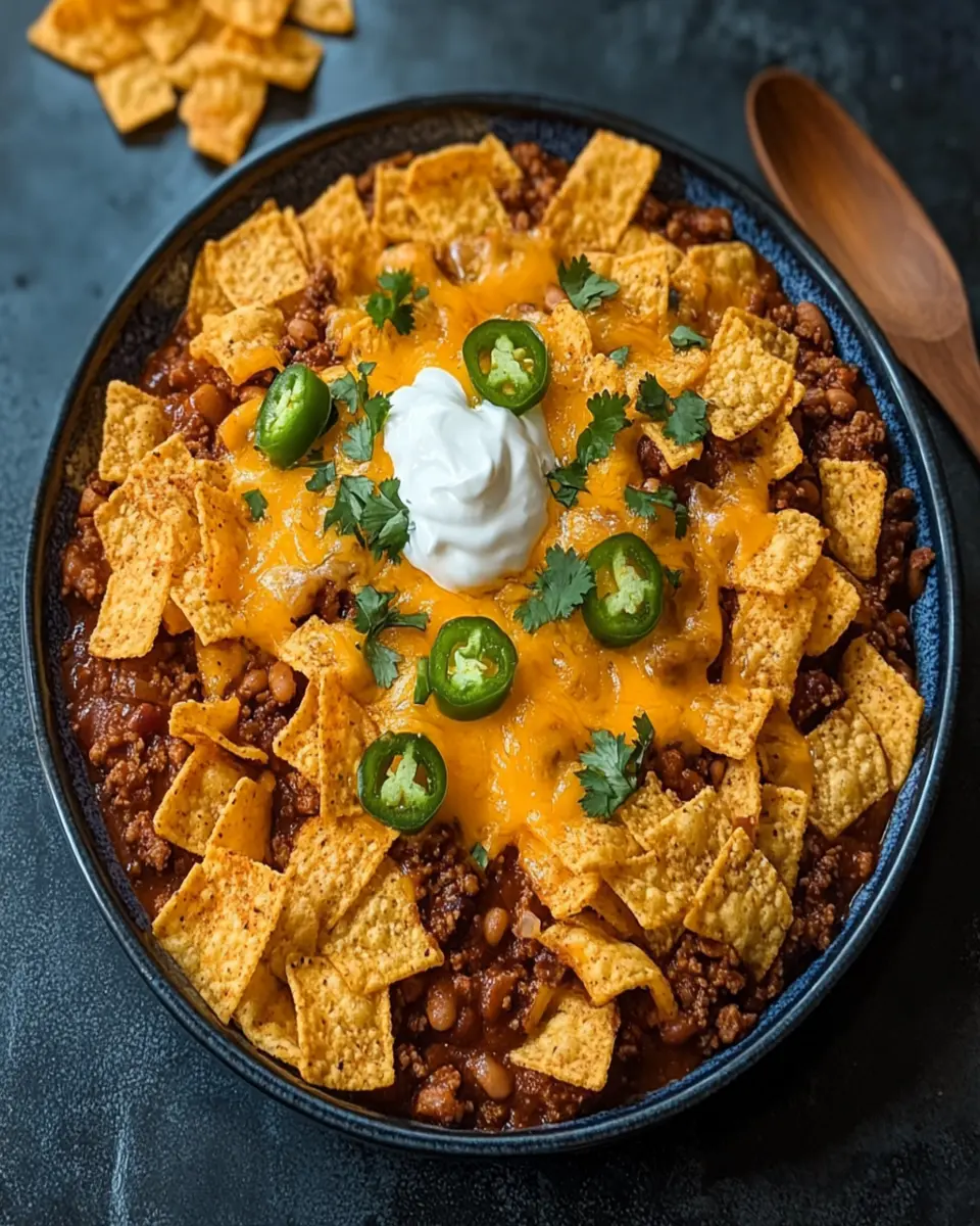 These serving suggestions make Frito Chili Pie a crowd-pleaser, perfect for gatherings or a cozy family dinner.