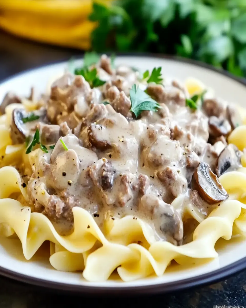 This recipe strikes the perfect balance between creamy and savory, making it a beloved choice for many. The combination of ground beef, mushrooms, and sour cream in a luscious sauce over egg noodles is a timeless classic that evokes warmth and satisfaction. It’s the kind of dish that invites you to gather around the table and share good food with loved ones.