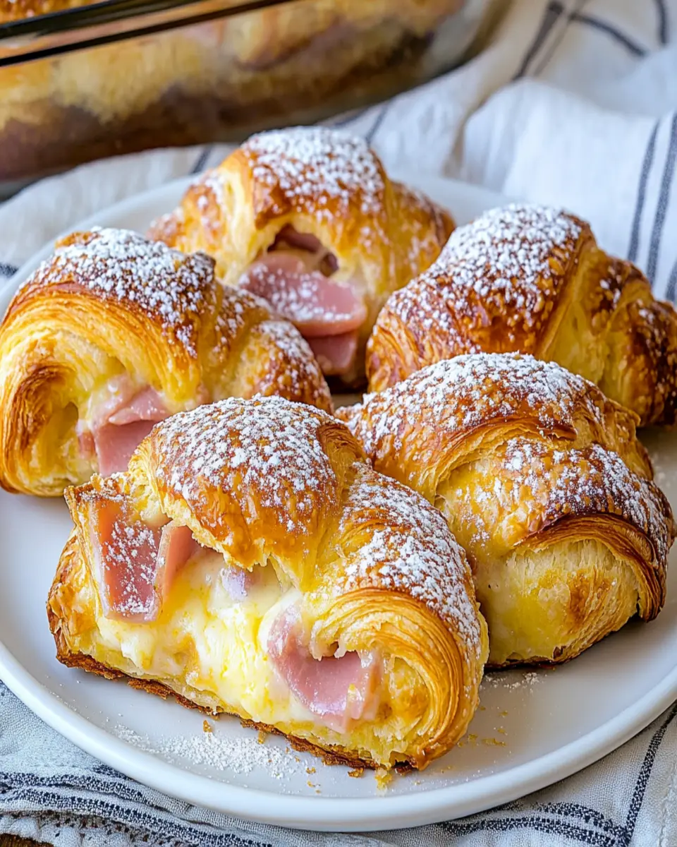 Croissants (6): These flaky pastries form the base of the dish, providing a buttery texture that absorbs the flavors of the ham and cheese beautifully.