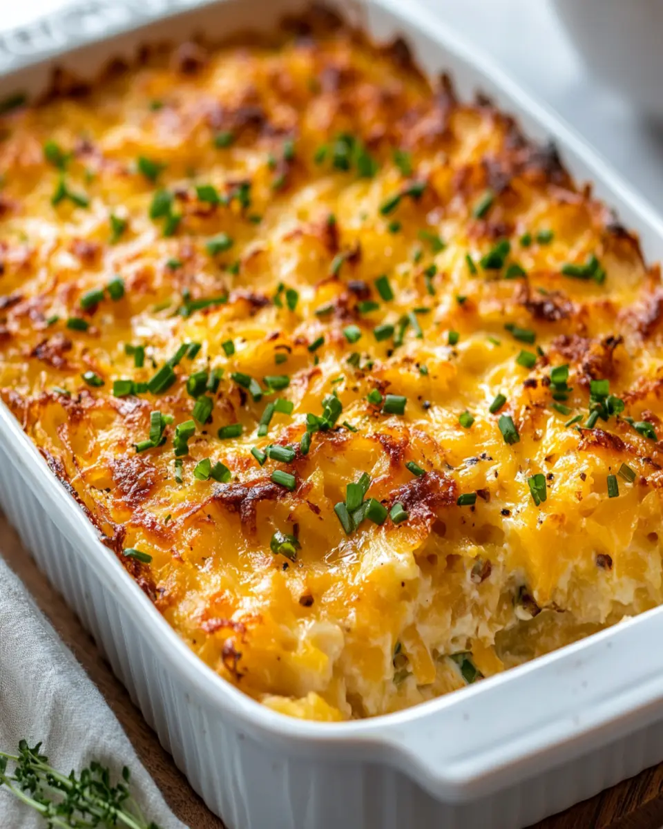A savory and cheesy hashbrown casserole perfect for breakfast or brunch.