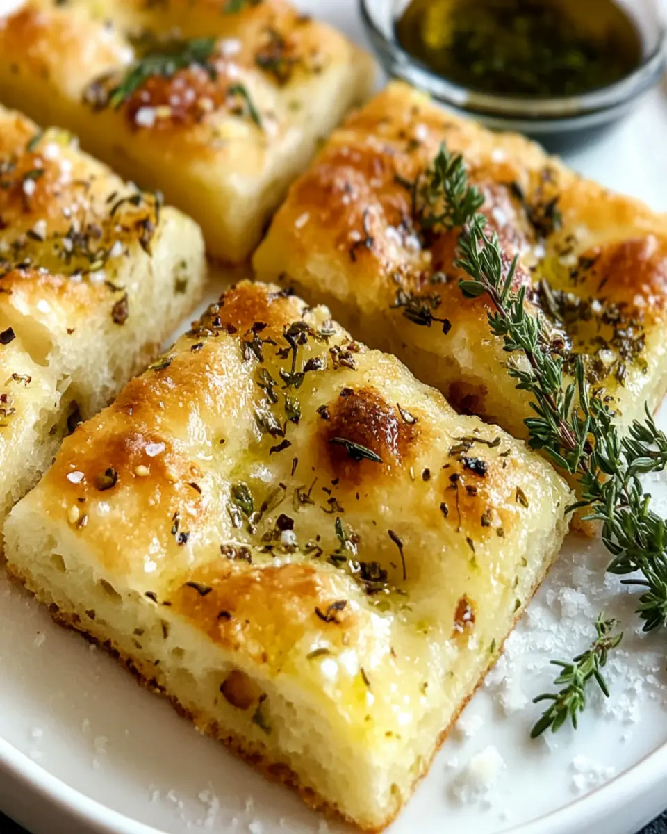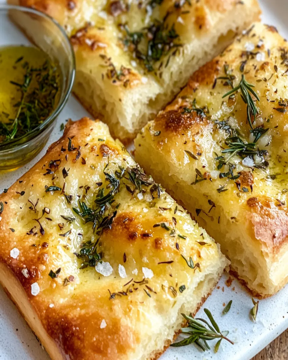 In conclusion, this Herb and Garlic Focaccia offers a delightful blend of flavors that will elevate any meal or gathering. With its soft, airy texture and rich infusion of garlic and herbs, it’s not just a bread; it’s an experience to share with friends and family. Whether served as a side dish, a snack, or the base for delicious sandwiches, this focaccia is sure to become a favorite in your home. So why not take the plunge and bake a batch today? Your taste buds will thank you!