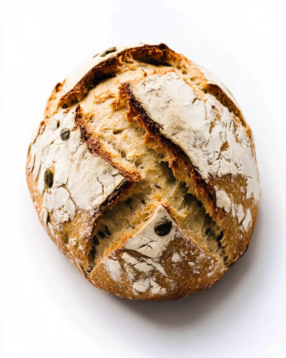 - Turn the dough onto a floured surface and shape it into a round loaf.