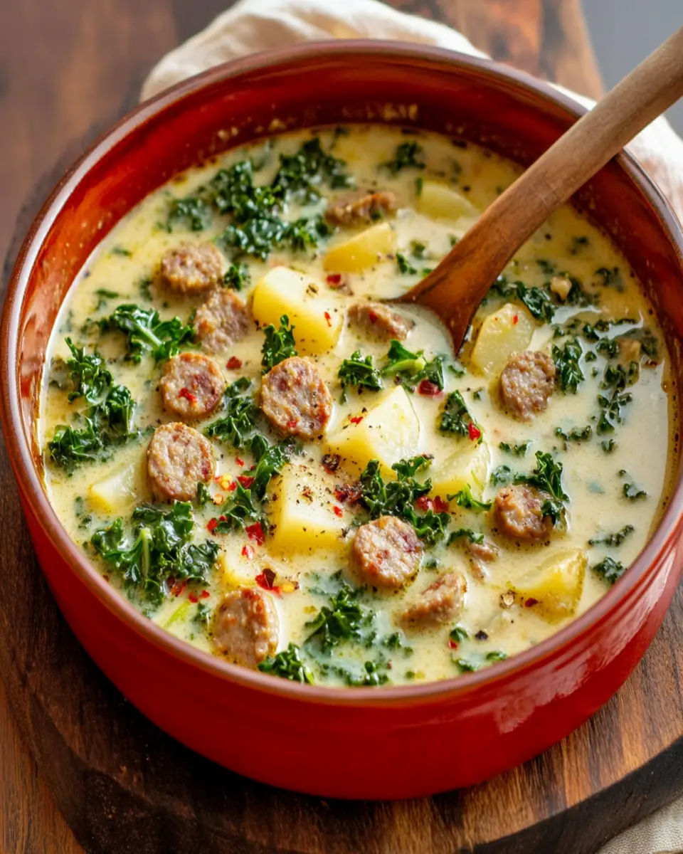 Zuppa Toscana is a traditional Italian soup known for its hearty combination of Italian sausage, potatoes, kale, and a creamy broth. This comforting dish is perfect for cold weather and is often served in restaurants, making it a favorite for many.