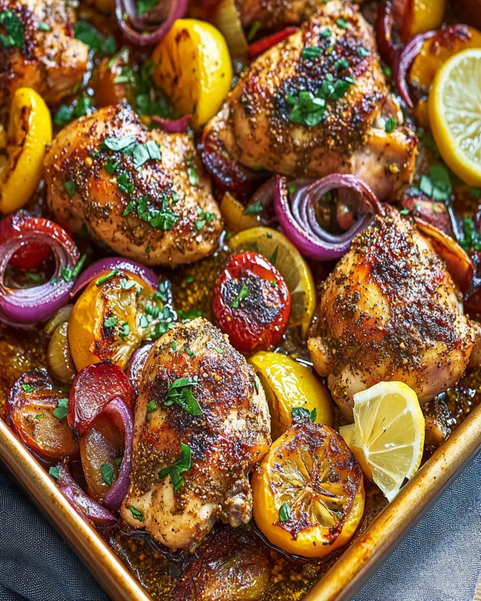 Lastly, this dish is perfect for meal prep! You can make it ahead of time and simply reheat it in the oven. The flavors will deepen and intensify, making the leftovers something to look forward to. Enjoy your cooking adventure with this Middle Eastern braised chicken tray bake!