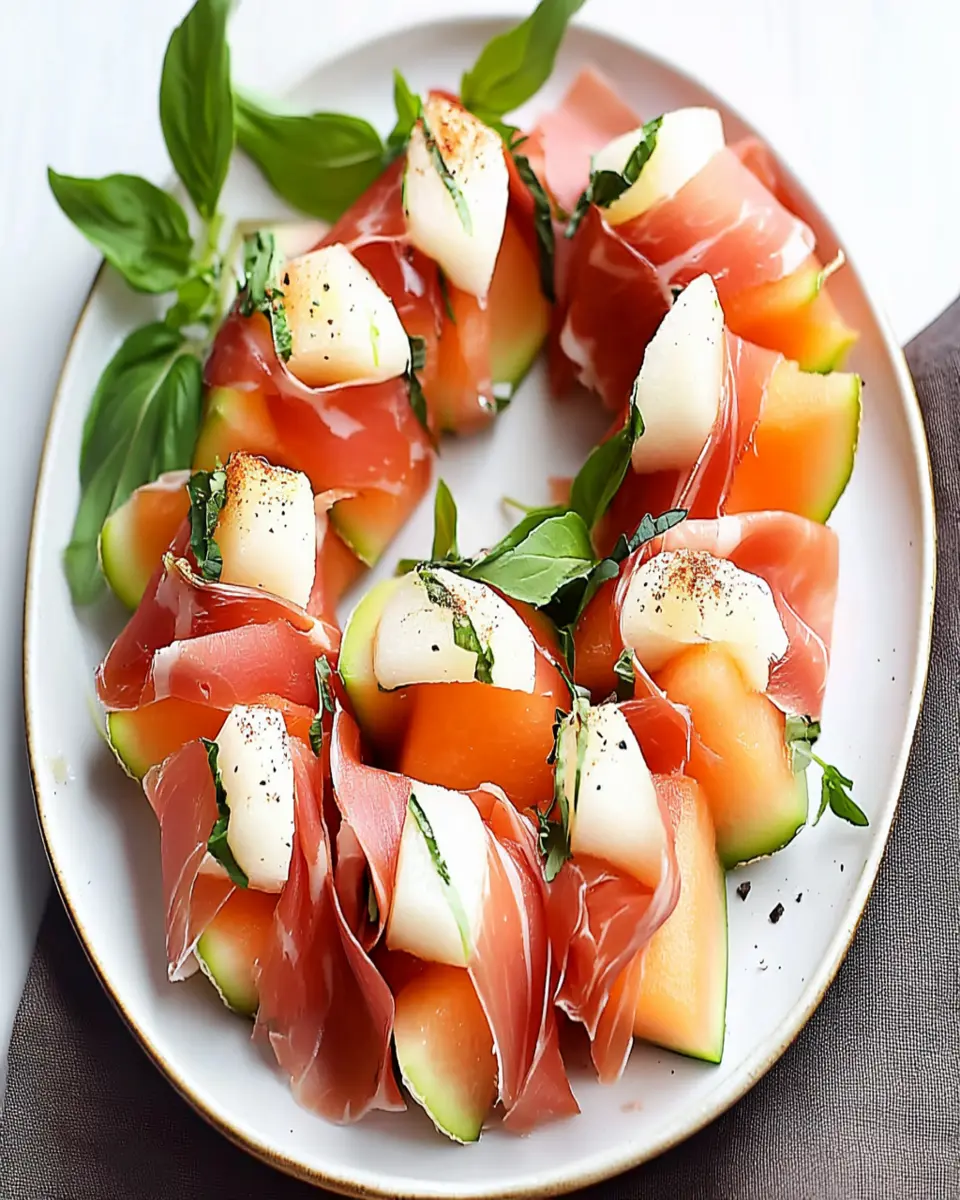To make your prosciutto-wrapped melon even more appealing, consider serving it on a platter with fresh herbs like basil or mint for garnish. This not only enhances the visual appeal but also adds a fragrant touch that complements the dish beautifully. Pairing with a crisp white wine or sparkling water can also enhance the experience.