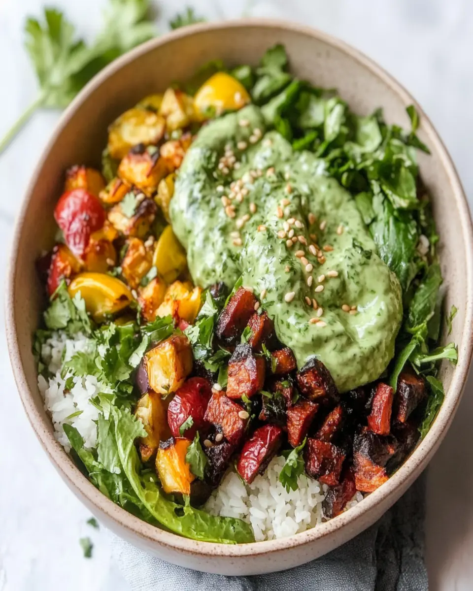 This Warm Winter Salad With Rice And Cilantro Tahini Sauce is incredibly versatile and can be served alongside a variety of dishes. For a complete meal, consider pairing it with grilled chicken or baked tofu, which adds a protein boost and complements the flavors beautifully. Additionally, this salad works well as a side dish for hearty entrees like roasted salmon or a winter vegetable stew.